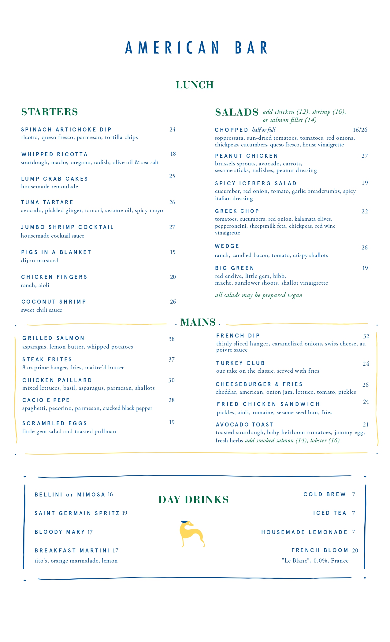choice of salmon (14), chicken (12), or shrimp (16)-